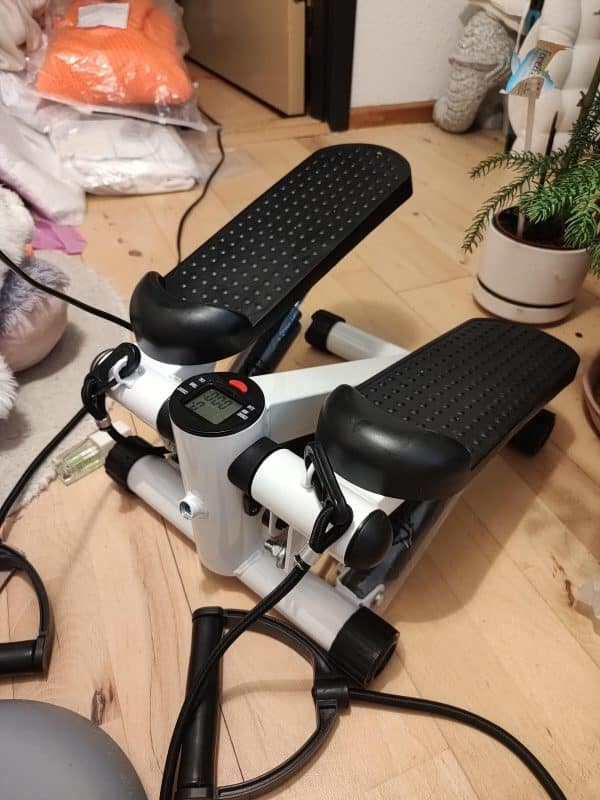 Super fin og funktionel mini-stepmaskine med elastikker til kun 399 kr. og fri fragt. Den er dog meget tung at træde på, selvom skruen til modstand ikke er sat i, men håber, det er et spørgsmål om at komme i bedre form. At jeg ikke giver fire stjerner, er fordi der var nogle små ridser i lakken. Orkede ikke bøvlet med at returnere, så har dækket dem med neglelak. Hurtig levering hjem til. Handler der gerne igen.