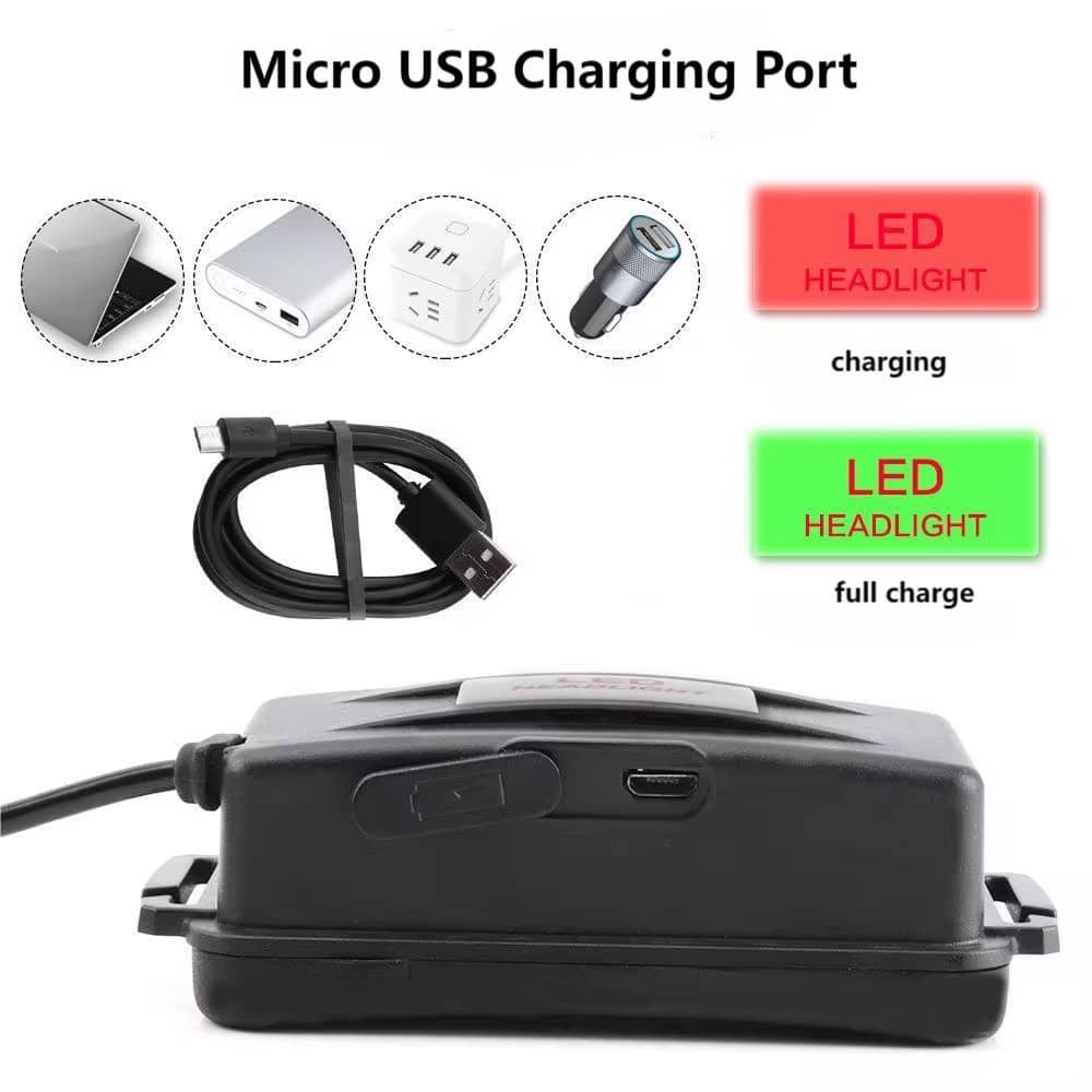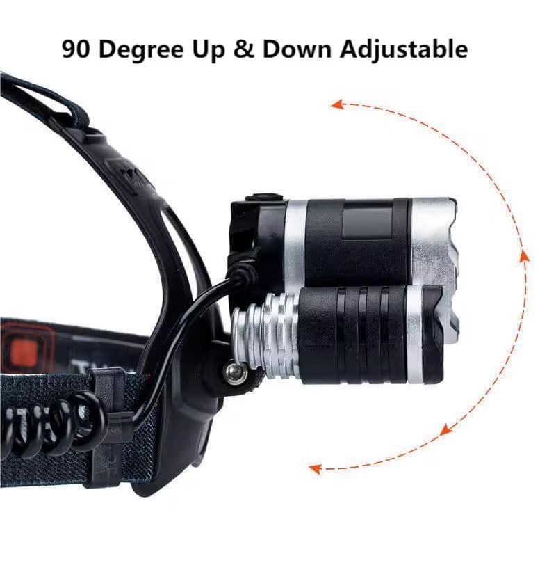 Dette er en genopladelig, letvægts pandelampe med tre kraftige LED-lys, der giver en lysstyrke på 5000 lumens. Denne pandelampe er ideel til udendørs aktiviteter, fagfolk, der arbejder i mørke omgivelser, og nødsituationer.