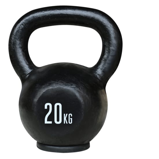 Kettlebellen er fremstillet i solidt jern, som er et prisvenligt alternativ til andre typer. For at beskytte gulvet anbefaler vi at anvende en underlagsmåtte under træningen.