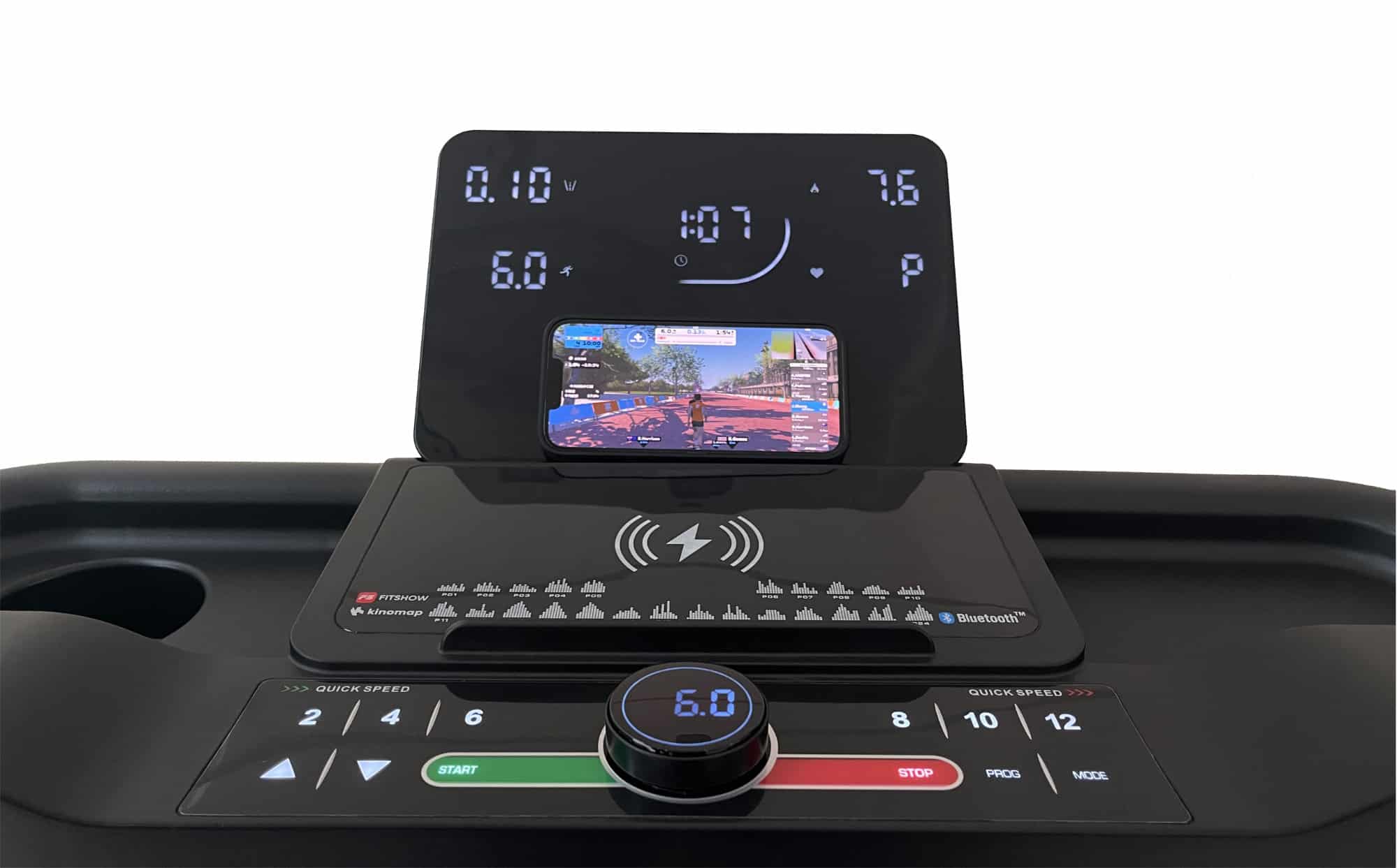 Via Bluetooth kan du med Fitshow oprette forbindelse til din træningsmaskine, hvor du kan se et hav af træningsruter med kort og landskaber, samt få tilpassede træningsprogrammer med muligheden for at sætte egne mål. Med Fitshow er der adgang til Kinomap og Zwift. Dine træningsresultater lagres, så du hele tiden kan optimere din træning og dele dem som motivation.