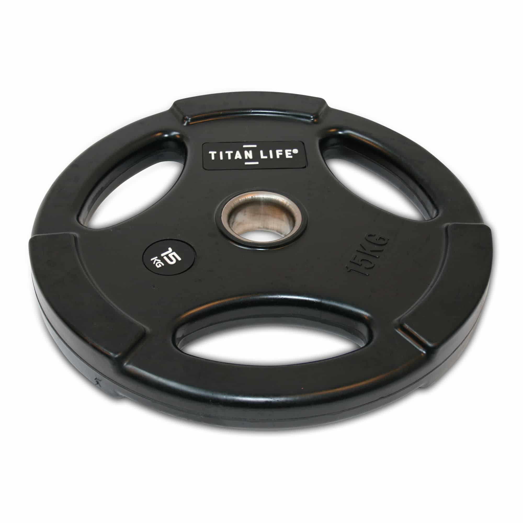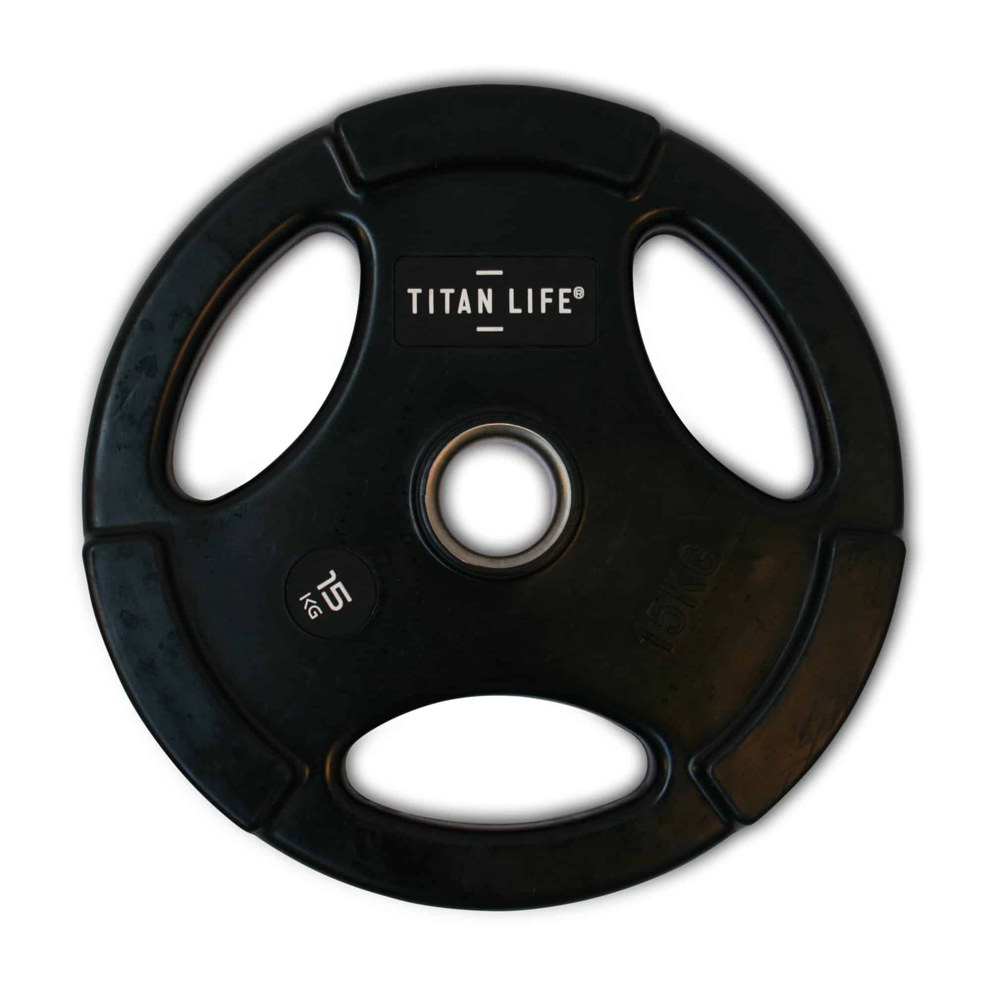 TITAN LIFE Weight Disc er lavet af gummi og stål.