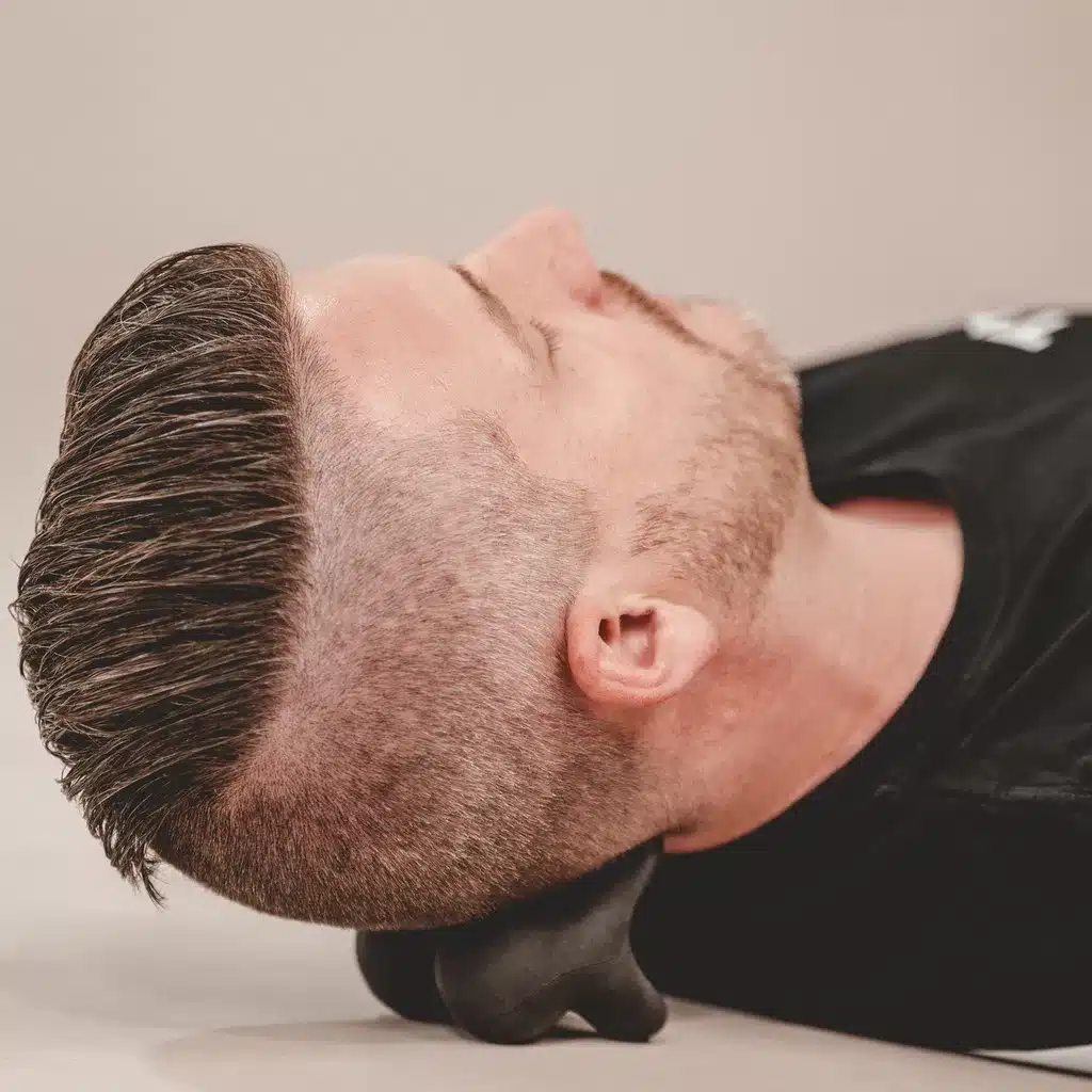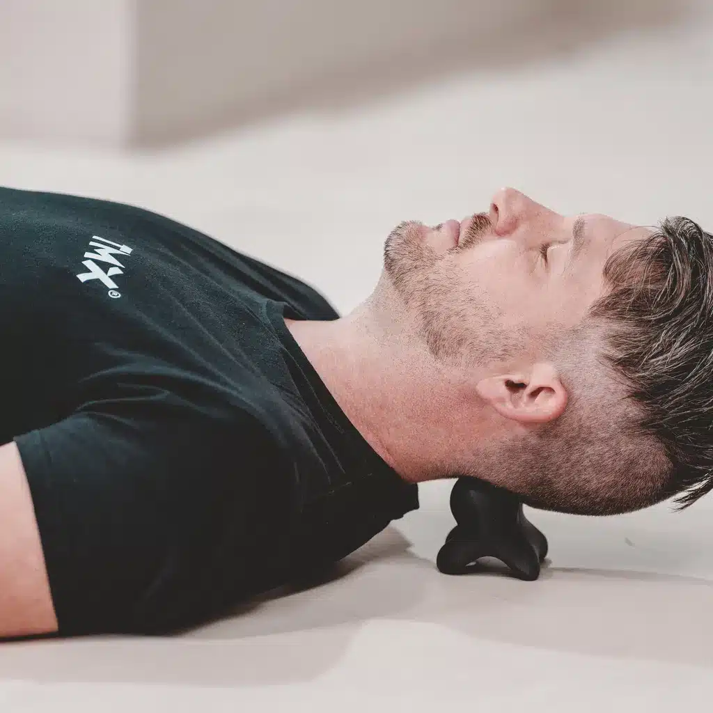 TMX DURA Neck er designet til selvbehandling. Du placerer blot værktøjet på det område af din nakke, hvor du mærker spænding eller ubehag, og læner dig derefter mod en væg eller gulv for at påvirke trykket. Du kan justere trykket ved at ændre din kropsposition eller ved at skifte vægt.