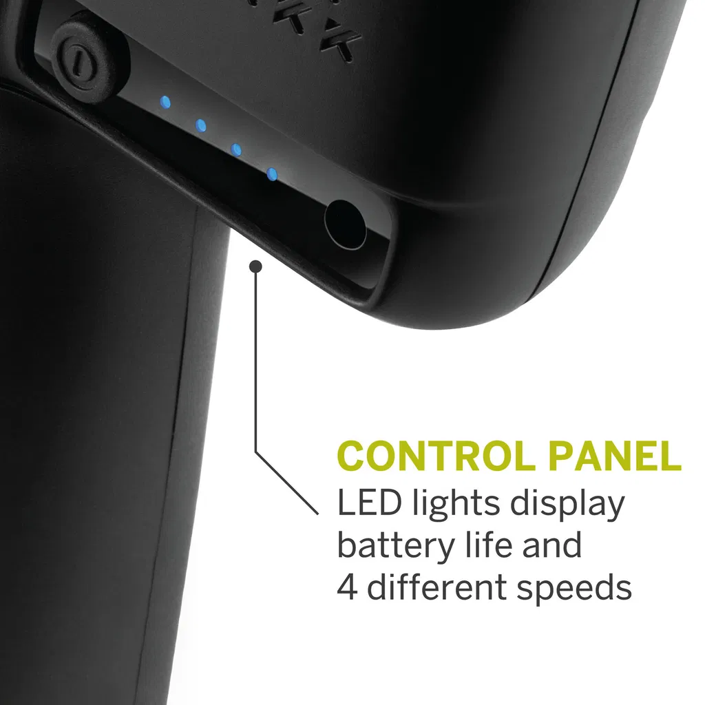 Designet til komfort og kontrol har denne massagepistol et vinklet håndtag, der balancerer vægten for et optimalt greb. Den støjsvage børsteløse motor sikrer en rolig massageoplevelse, mens de fire hastighedsindstillinger giver mulighed for personlig intensitet og tryk, så du kan tilpasse behandlingen til dine specifikke behov.