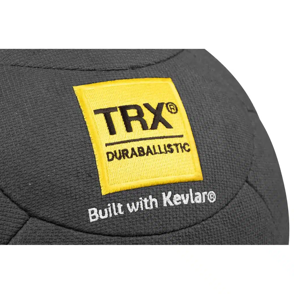 TRX Duraballistic Medicine Ball er lavet af en aramid-baseret syntetisk polymer, som er 20 gange stærkere end traditionelt polymermateriale. Den har også en indre foring for at bevare formen og en taktile overflade for bedre greb og kontrol.